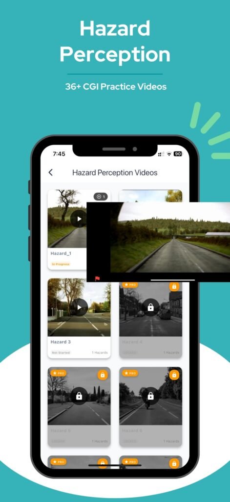 Our app includes a wide range of realistic video scenarios that prepare you to spot developing hazards just like in the real test. You’ll learn to: